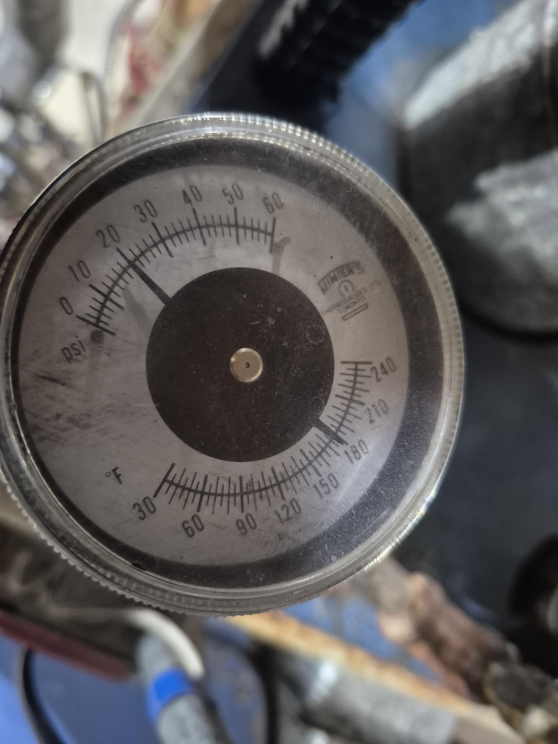 Pressure on unit capped out at 25 PSIG and temp at 180°F.