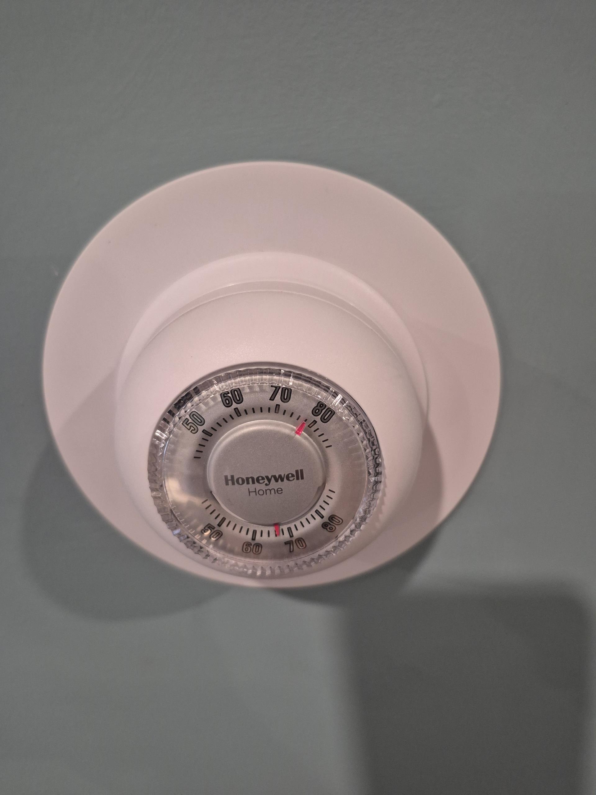 Arrived on site for a thermostat replacement. Unit was off upstairs even though it was calling for heat. Went to go turn off the power to the unit to disconnect the wires from the thermostat safely. Remove the thermostat and the base all together after undoing the wiring. Replace thermostat with a new thermostat. Make sure to make the connections with the thermostat wires tight and secure. Want to go turn on the unit and then called for heat, call for heat was successful. Turn unit off and on about four times to make sure thermostat was fully operational. Homeowner acknowledge the work that was done and signed off.