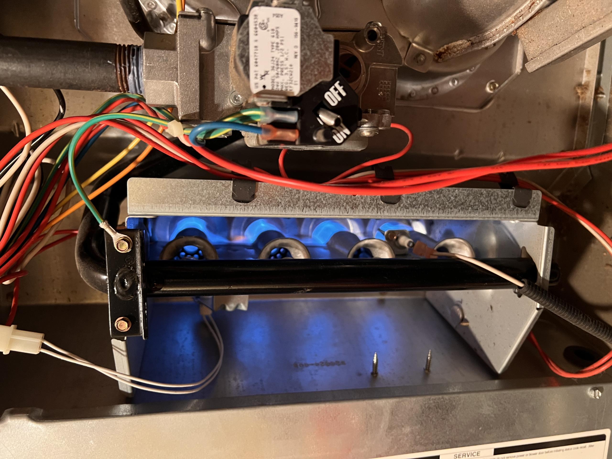 Basement Furnace unit: Turned heat on and confirmed operation. checked filter andas in good condition. Customer changed Humidifier panel but asked me to check it, it is functioning. Brushed and Wiped down furnance blower cabinet and gas burners. Burners fired and are in good working order. No visual impingement detected. Measured 1.1 amps on the hot surface igniter. Cleaned and Measured 2.5 micro amps on the flame sensor. Although functioning, flame safety system has carbon buildup and recommend changing along with ignition system. Will provide Bronze Repair estimate for OEM parts. Measured heat rise at 35 degrees. System is operating as it should.