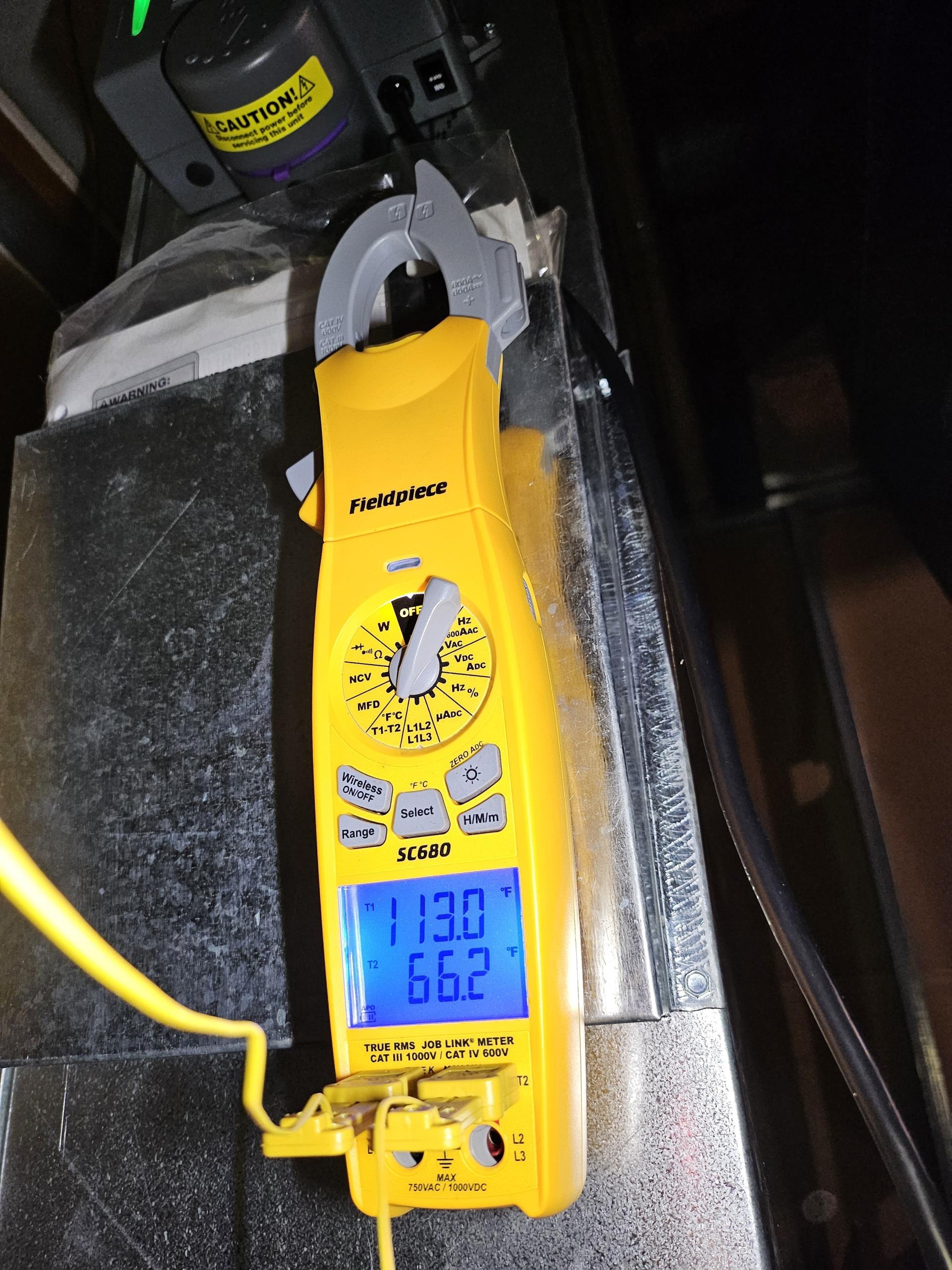 Arrived onsite for lack of cooling to the third floor and too much cooling in the basement level. Furnace with AC coil located in basement. Upon arrival ask homeowner to turn down the thermostat to start the AC. Went to the basement hvac room. Could immediately feel the cold temperature in the room. Used probes to measure air flow and temperature drop. Measure around 19 degree temperature drop 68/49 and measures .09 total external static pressure (TESP) both are within manufacturer’s specifications.