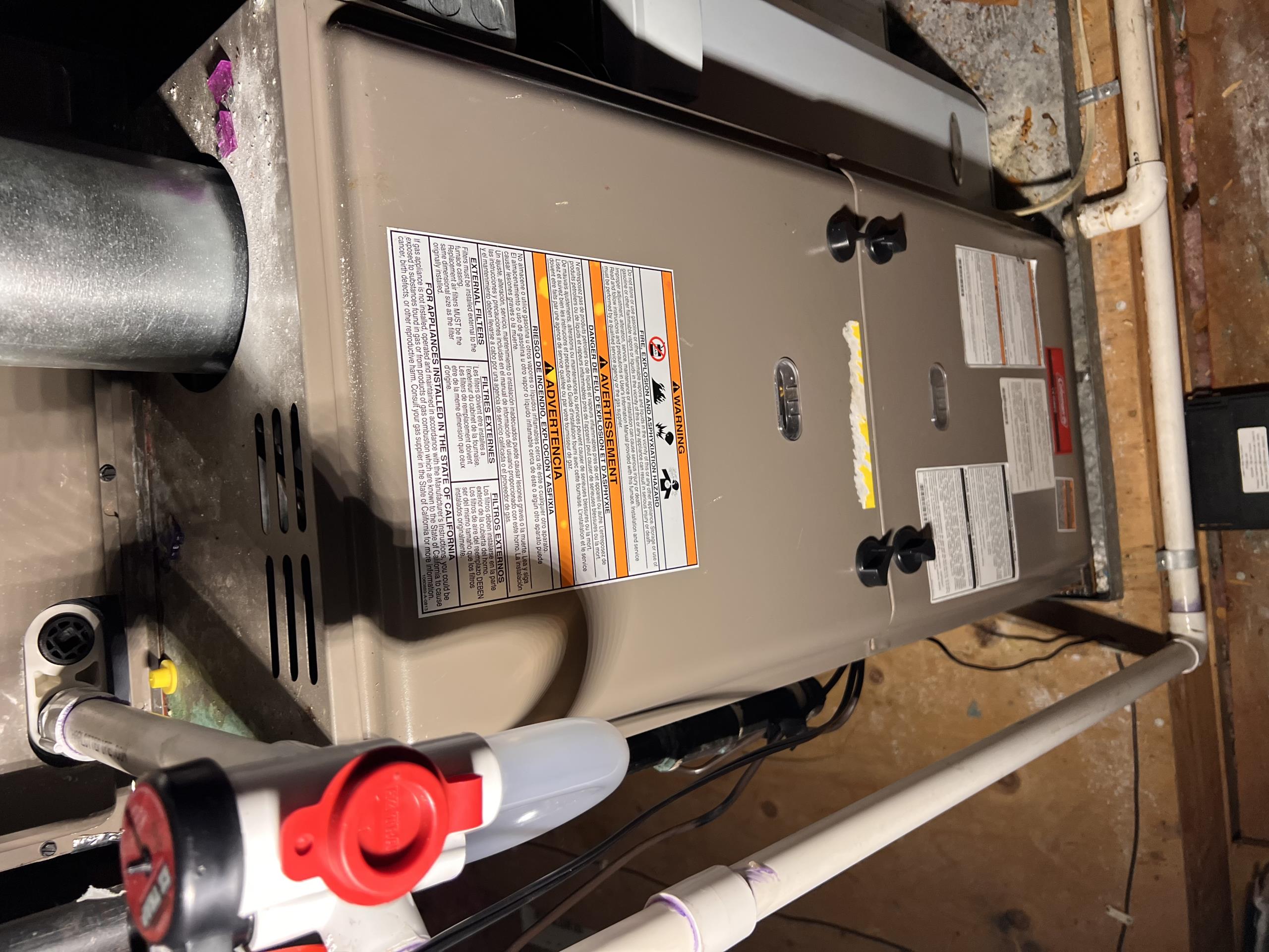 Sparta, NJ - Agree to customer upon arrival, customer led me to the units downstairs in the basement which is one furnace and one air handler. There's also a unit in the Attic. Two thermostats on the first floor, smart thermostat for heater, old thermostat for ac. One thermostat upstairs inside of a bedroom. Air handler downstairs filter is pulverized the attic is not. Filter for upstairs unit is in a return register in the hallway on the ceiling. Both units temperature difference were tested with temperature probes. Basement unit temperature peaked at 14° difference while attic peaked at 16° difference, it was 60° F outside at the time. Wash down condensers with just water outside. Changed pulverized filter, customer said she changed the filter for upstairs.