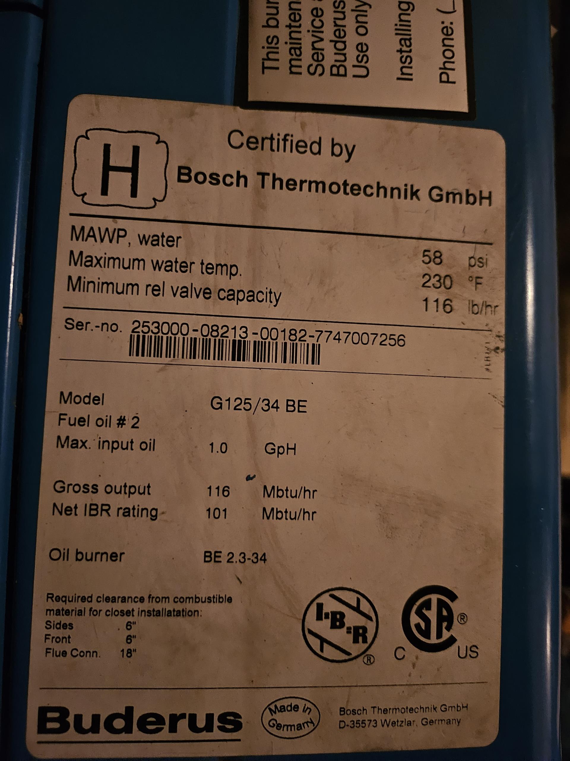 Sparta, NJ - Performed the maintenance for one oil fired hot water boiler, replaced the oil nozzle, oil filter, and pump screen. The burner uses a 1.25 60° w nozzle, a spin on oil filter and an "A" pump screen. Removed and cleaned the electrodes and the combustion head, opened the top of the boiler and thoroughly brushed it and vacuumed it. Swung open the front door and inspected the combustion chamber and the target wall and confirmed that everything is in good condition and is clean. Started up the boiler and performed a combustion test and confirmed that the burner and boiler are operating properly.